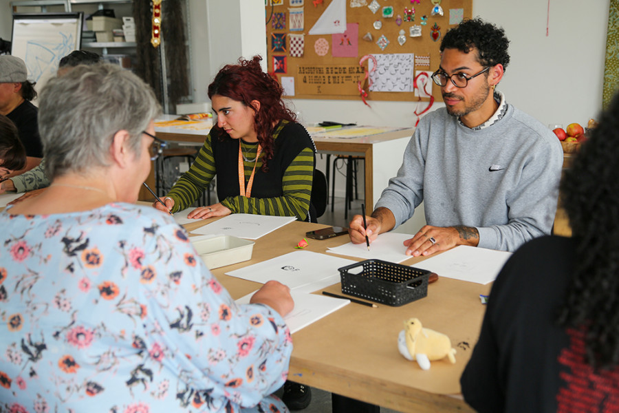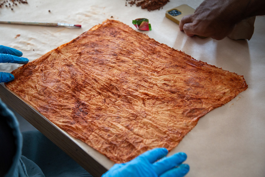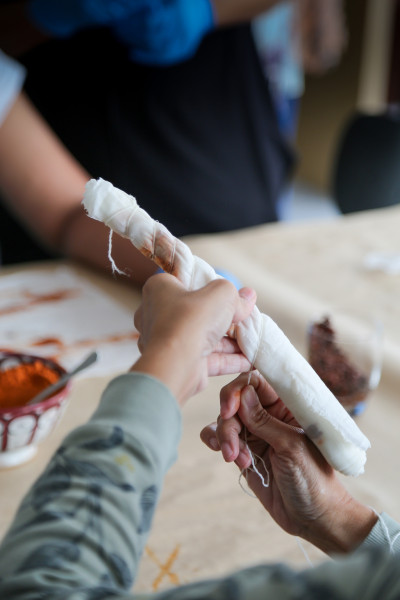 The workshop will begin with The Drawing Experience, a sensory-based laboratory guided by Raziel Perin, followed by Joiri Minaya leading a session experimenting with different techniques to dye fabric with Bija.